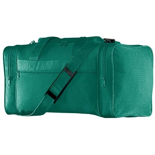 600-denier polyester with PVC coating. Zippered main compartment has large U-shaped opening with two zipper pulls. Zippered front pocket. Separate zippered compartment at each end. Matching web handles with self-fabric handle wrapper, reinforced at stress points. Adjustable and detachable matching shoulder strap with rubber shoulder guard. Self-fabric piping for added durability. Removable inside bottom band. 20W x 10H x 10D