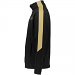 Heavyweight 100% polyester matte brushed tricot. Tagless label. Quarter zip pullover style. Contrast color inserts. Set-in sleeves. Front pouch pockets. Self-fabric cuffs and bottom band