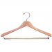 17" Natural Waxed Finish with Locking Skirt/Slack Bar and Chrome (square) Hook. Concave shape to add fullness to garments on the rack. 1/2" thick.